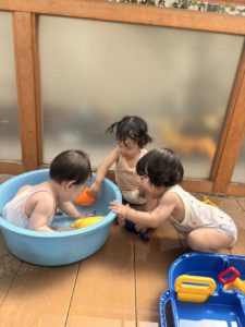 手のひらでパシャパシャと水の感触を楽しんでいました🐳