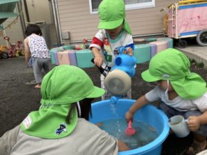 ようやく秋らしい🍁心地よい風が吹いてきた園庭で