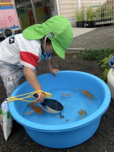お水に浮かぶ葉っぱをスコップやフライパンで