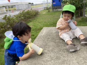 元気いっぱいあそんで水分補給中💦