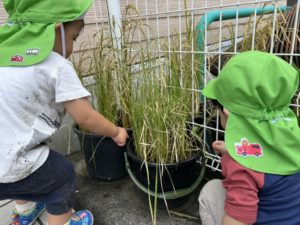 バケツの稲🌾🪣の成長を確認中👀