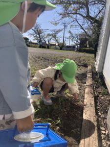 落ち葉の中や石の下に「いるかな~🦗」と虫探し🔍