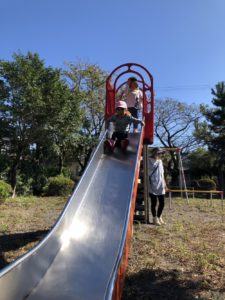 滑り台を何度も滑ったり、