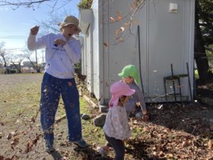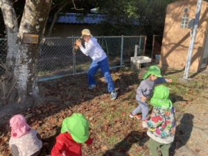 落ち葉の掛け合いっこをして大はしゃぎ🍂