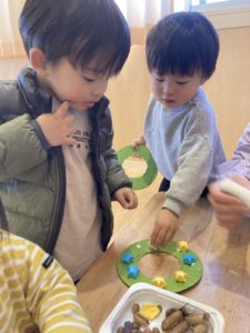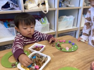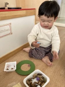 うみ組さんは、お散歩で拾ったどんぐりやベビーマラカスを