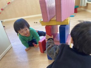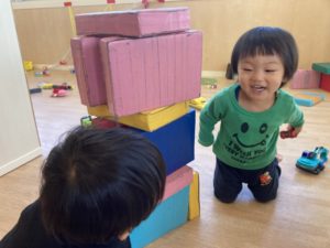 ブロック越しに顔を覗き合って楽しそうにしていました🤭🌟