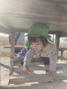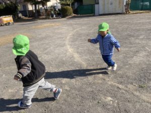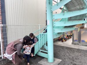 2階で遊んでいた1.2歳児は避難滑り台で園庭に降ります🛝