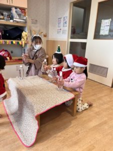 クリスマス会では、「ちちんぷいぷいのぷ~い🪄」のマジックショー🧙