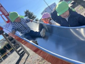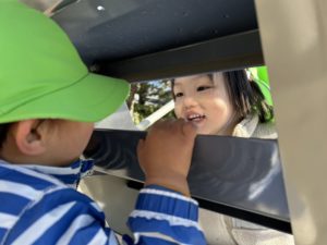滑り台の階段の隙間から「ばぁ!!」
