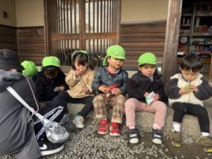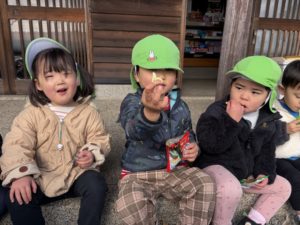 お店のお外をお借りして、自分で買ったお菓子を「いただきます!」