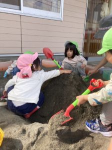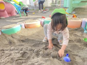 今日は、園庭で砂遊びを楽しみました🪣☀️