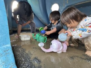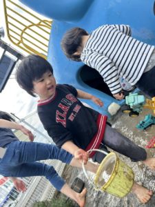 避難訓練を行った後、そのまま園庭で遊びました🛝