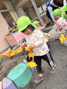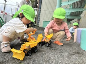 お砂場にぴったりの工事車両を、
