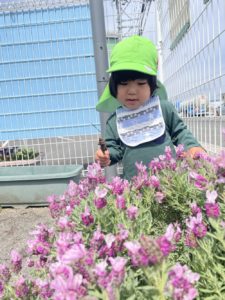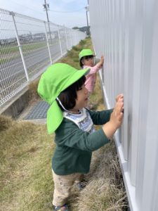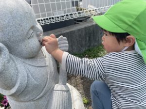 園庭にいる“みのるくん”に石のごはんをあげています😁